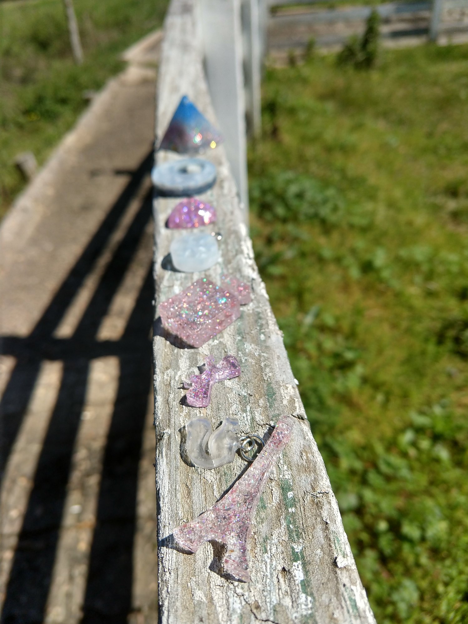 These are hand made resin items. I have both silver and gold charm ringlets to go with the charms. I have a few pre-made for my website but if you don't see one listed that you would like I can take a custom order of one just contact me about one. (My molds/dyes/glitters and other decorative inserts that I have are on my business's Facebook page)